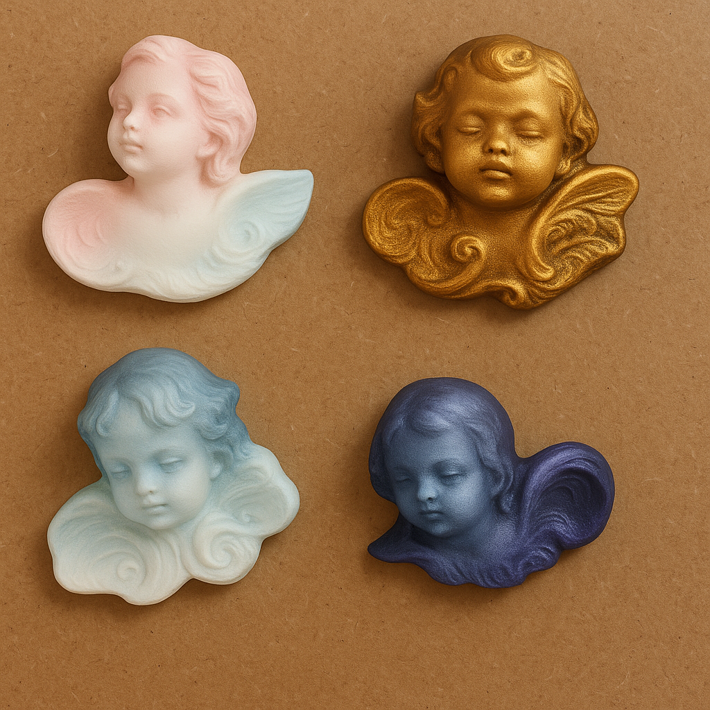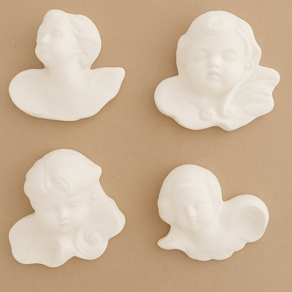 4 motifs en plâtre blanc prèt à être décoré avec peinture, patine,verni, collage, etc...
