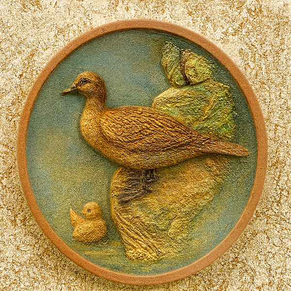 médaillon avec canard en plâtre blanc prèt à être décoré avec peinture, patine,verni, etc...