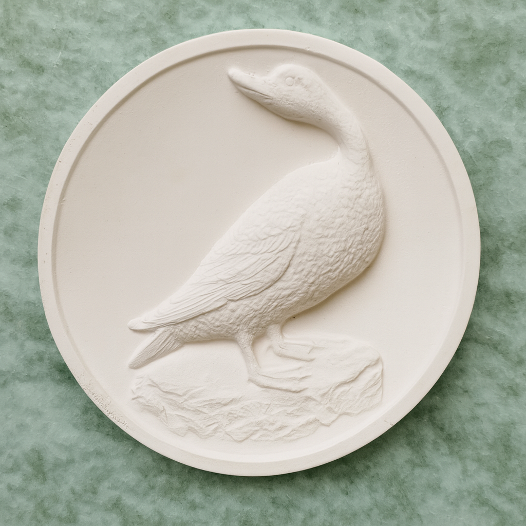 médaillon avec oie en plâtre blanc prèt à être décoré avec peinture, patine,verni, etc...