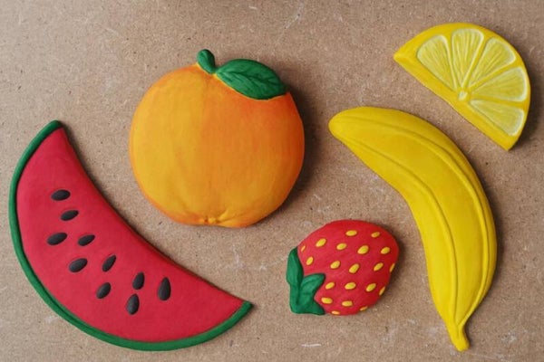 lot de fruits en plâtre blanc