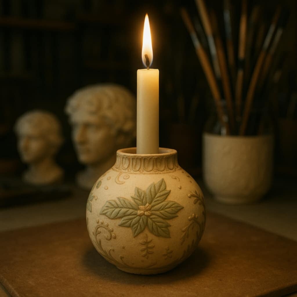 bougeoir en forme de boule de Noël décoré de fleurs de Noël en relief en plâtre blanc