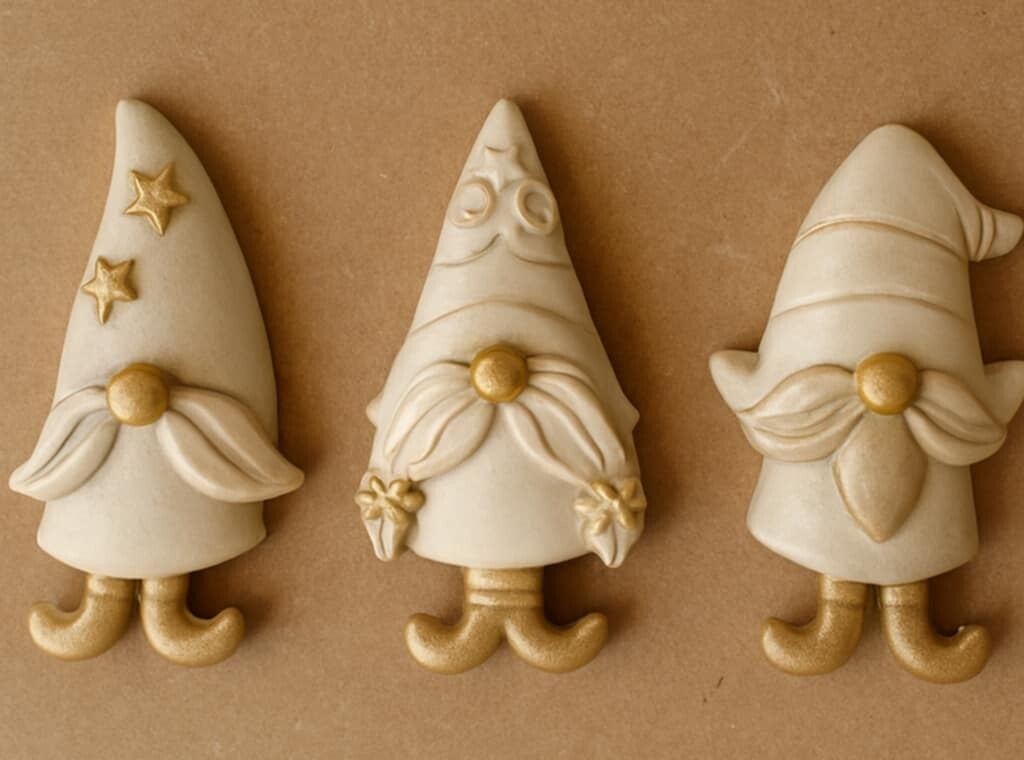 lot de 3 petits gnomes de Noël en plâtre blanc