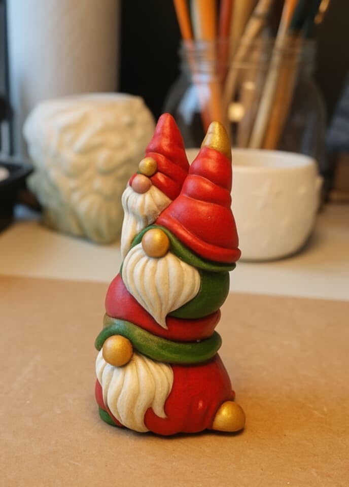 tour de 3 petits gnomes de Noël en plâtre blanc
